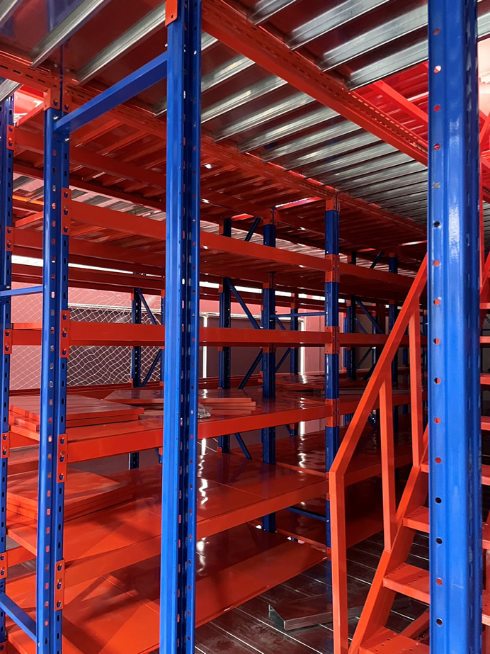 5、下层是货架形式,上层可以是平台也可以是货架的结构。底层货架既可以存储物料又是楼面的支撑,极具灵活性。